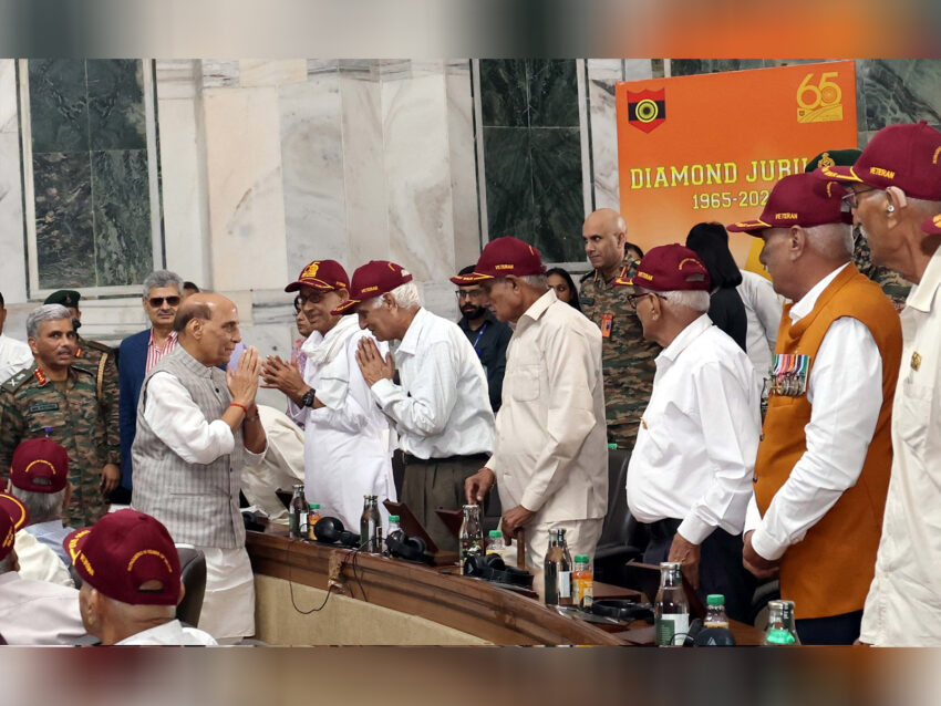 Defence Minister Rajnath Singh on Friday interacted with the brave veterans and the families of the fallen heroes of the 1965 war at an event organised by the Army at South Block, New Delhi, to commemorate the diamond jubilee of India’s victory over Pakistan.