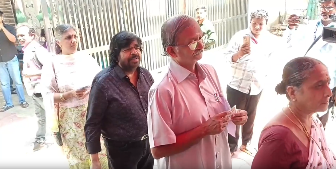 Demonstrating civic responsibility, T. Rajendar chose to wait in the long queue alongside the general public to await his turn to cast a vote. His presence in the queue drew attention from fellow voters as he participated in the electoral process in the same manner as every other citizen.