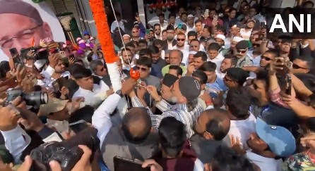Hyderabad (Telangana) [India], January 26 (ANI): All India Majlis-e-Ittehadul Muslimeen (AIMIM) Chief Asaduddin Owaisi on Monday unfurled the National Flag during the 77th Republic Day celebrations in Hyderabad.