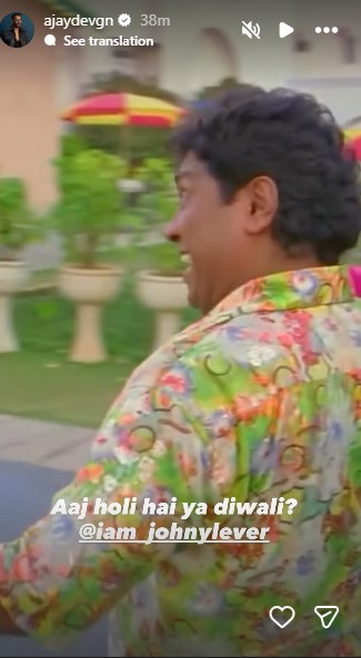 Actor Ajay Devgn on Tuesday dropped a humorous Holi wish featuring a famous scene from the film Golmaal 3, in which actor Johny Lever is seen wishing “Happy Holi” during a Diwali scene.