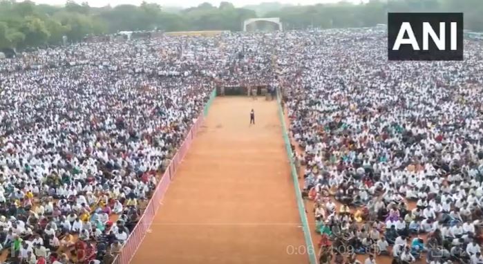 The drone footage showed a large crowd at the Vidya Pratishthan ground, where Ajit Pawar’s last rites were being performed.