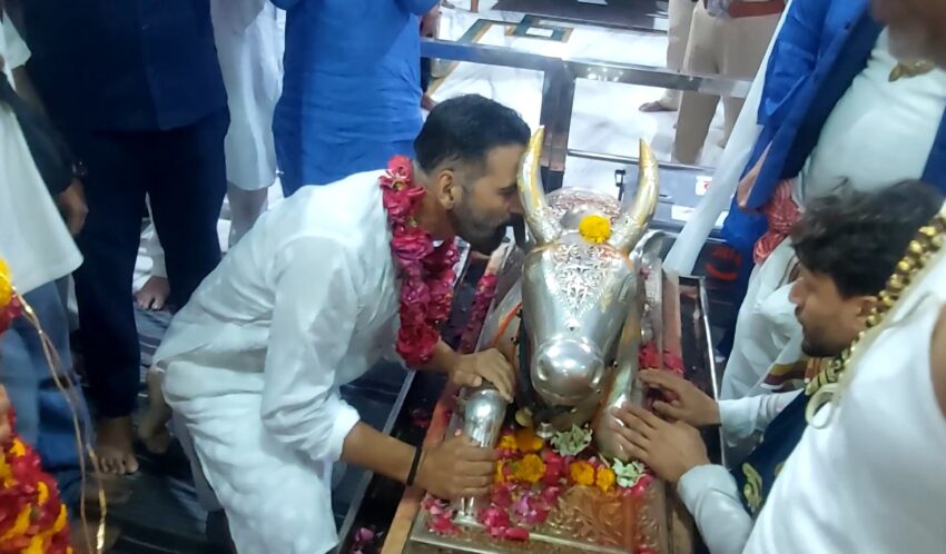 Ujjain (Madhya Pradesh) [India], April 1 (ANI): Actor Akshay Kumar visited the Shri Mahakaleshwar Temple in Ujjain early Wednesday morning to offer prayers ahead of the release of his upcoming film ‘Bhooth Bangla’.