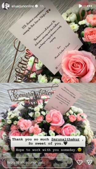 Taking to his Instagram story, Allu Arjun shared a picture of the beautiful flower bouquet sent by the ‘Hi Nanna’ actor along with a heartfelt congratulatory message.