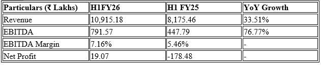During the first half of FY-26, the company also consciously focused on the improvement in working capital efficiency, reducing finance costs, and strengthening our export business and also controlling the other operating costs. These efforts resulted into improvement in EBITDA, which surged 76.77% YoY.