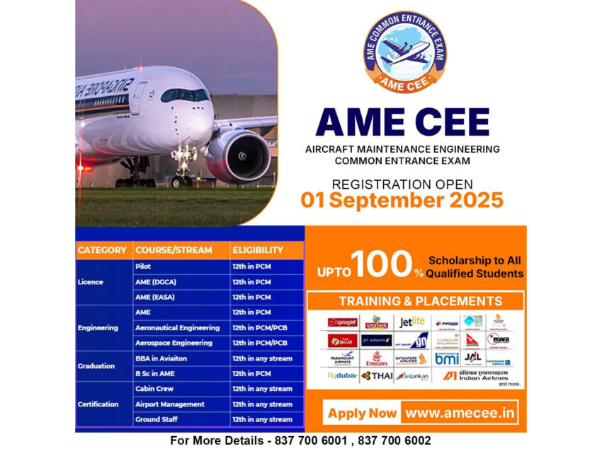 The AME CEE is a prestigious exam connecting candidates to top institutes with programs approved by DGCA, EASA, AICTE, and UGC. It offers exclusive scholarship opportunities and industry-aligned career guidance.