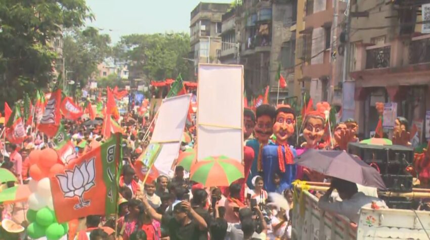 Kolkata (West Bengal) [India], April 2 (ANI): Union Home Minister Amit Shah on Thursday held a massive roadshow in Bhabanipur Assembly constituency, urging voters to support BJP’s ahead of the West Bengal Assembly elections.