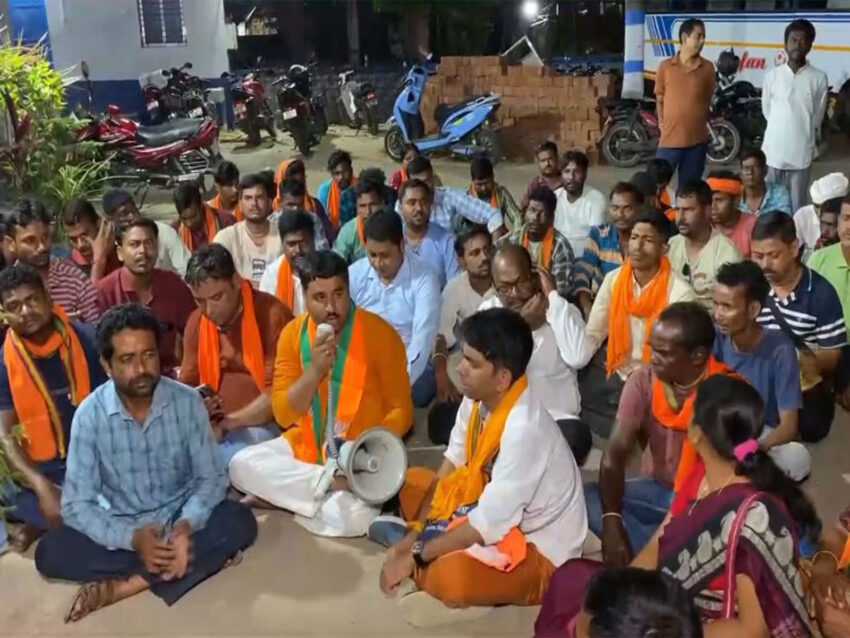 The BJP supporters on Saturday held a sit-in protest outside the local police station in Birbhum after the police arrested three party workers.