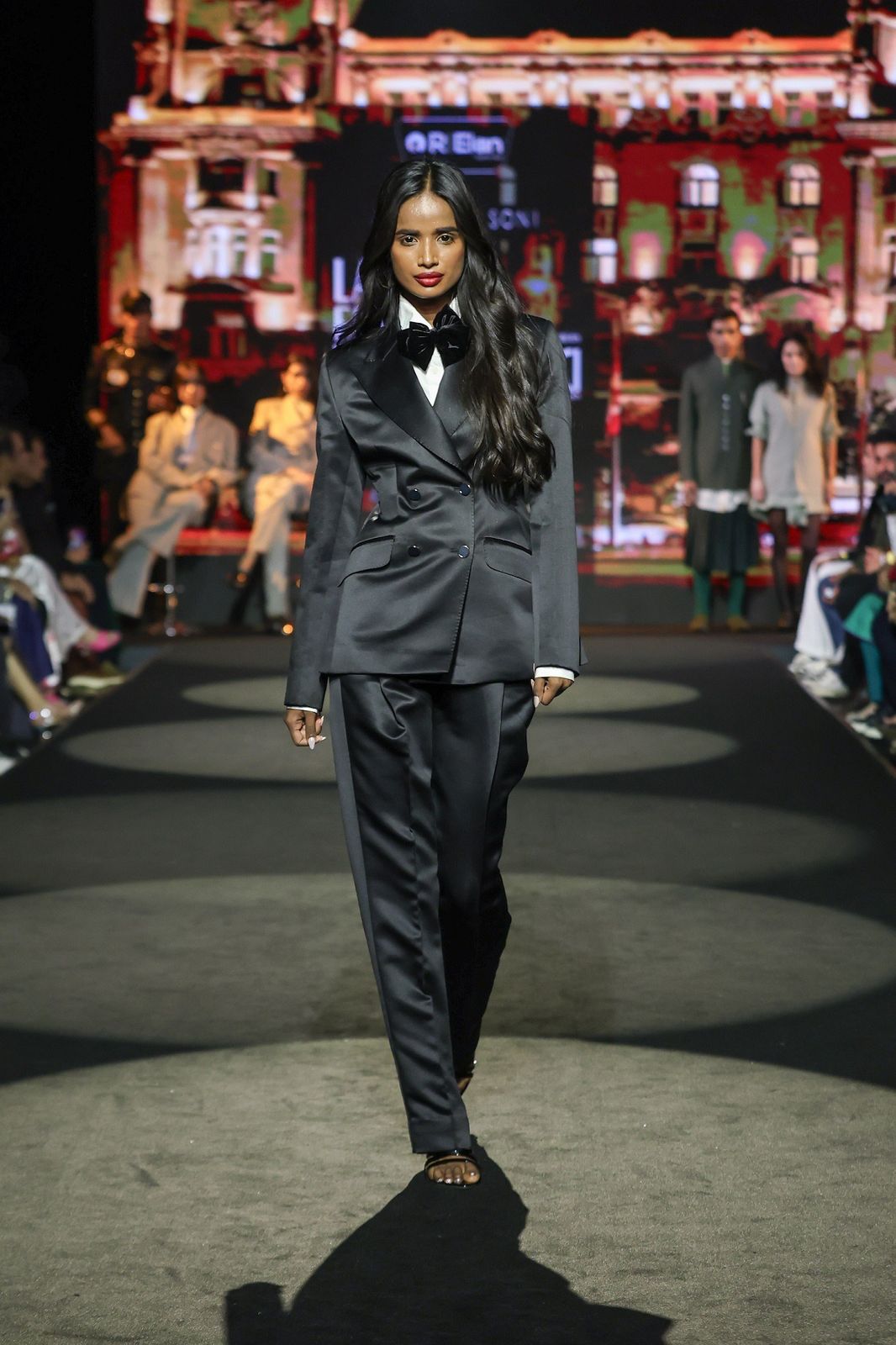 According to the press release, Ashish’s collection was for opulent occasion wear with a language in the colour black, at its core. Displaying cultural jackets, sweeping trousers and fluid gowns, there was a clear play of colour, shadow and texture. The monochrome palette highlighted the grandeur of the creations, while the sharp tailoring showcased restraint and quiet drama.
