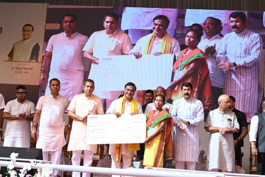 Continuing the state government’s noble endeavour of women empowerment through Mukhyamantrir Mahila Udyamita Abhiyan, Chief Minister Sarma on Saturday distributed cheques of Rs 10,000 each as seed capital to 19,318 members of self-help groups in the Lakhipur Legislative Assembly Constituency at a large public meeting held at Labak Tea Garden playground in Lakhipur, Cachar district.