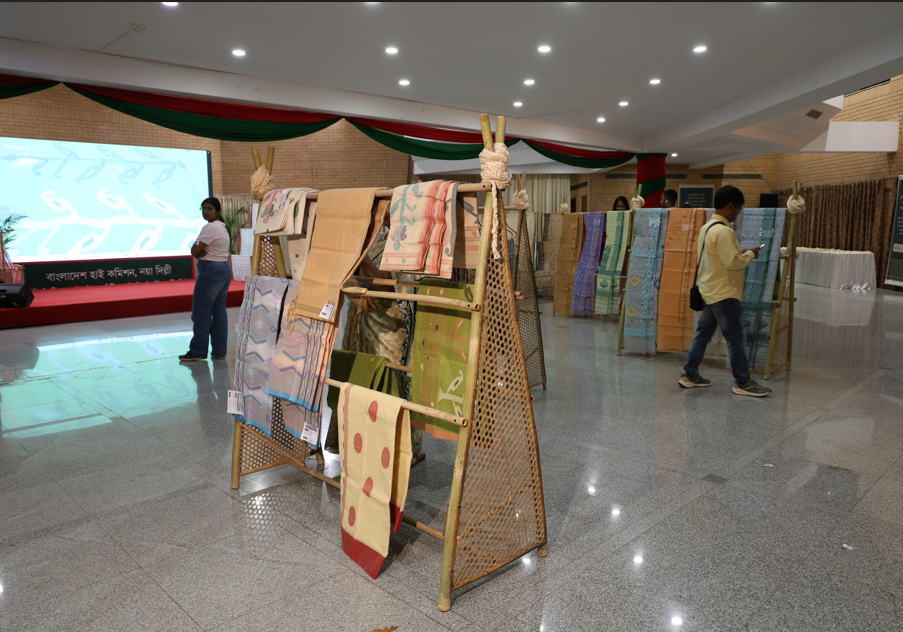 The event was inaugurated by Bangladesh High Commissioner to India M. Riaz Hamidullah, alongside noted designer Padma Shri Sunita Kohli and craft revivalist Padma Shri Laila Tyabji. Curated by Chandrasekhar Bheda (India) and Chandrasekhar Saha (Bangladesh), the exposition brought together some of the finest handwoven sarees from Tangail and Pabna–two historic weaving hubs of Bangladesh.