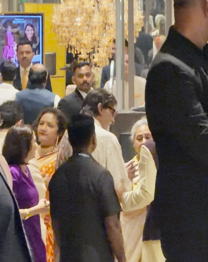 They were later seen interacting with guests inside the wedding venue. Both actors coordinated their outfits in ivory tones, with Jaya Bachchan wearing a traditional saree and Amitabh Bachchan opting for a white kurta-pyjama paired with a shawl.