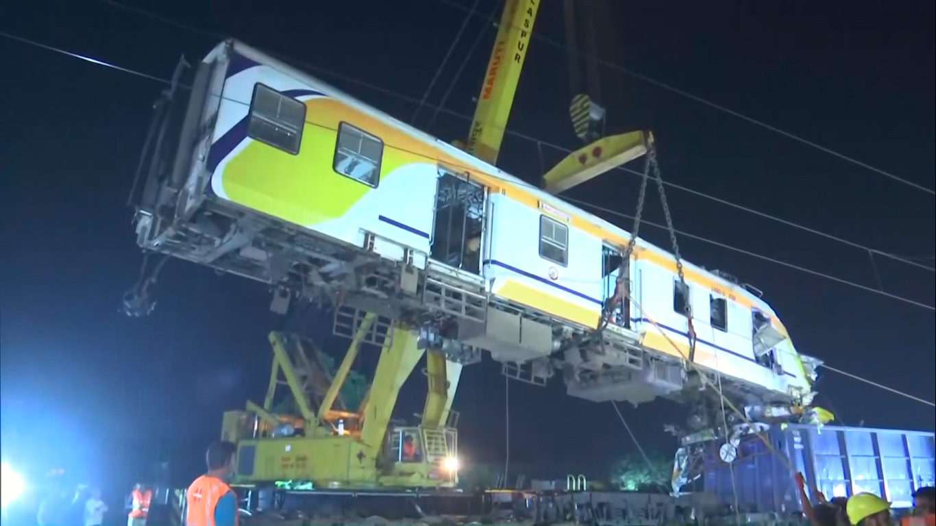 Meanwhile, clearance and restoration work are underway at the site where a Mainline Electric Multiple Unit (MEMU) train collided with a stationary goods train,