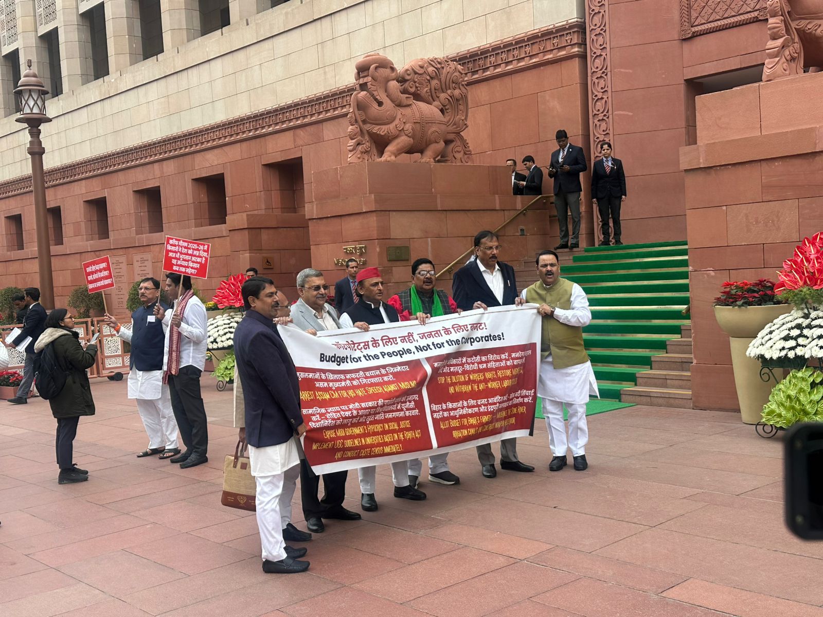 Meanwhile, ahead of the Union Budget presentation, opposition leaders staged a protest outside Parliament in the national capital.