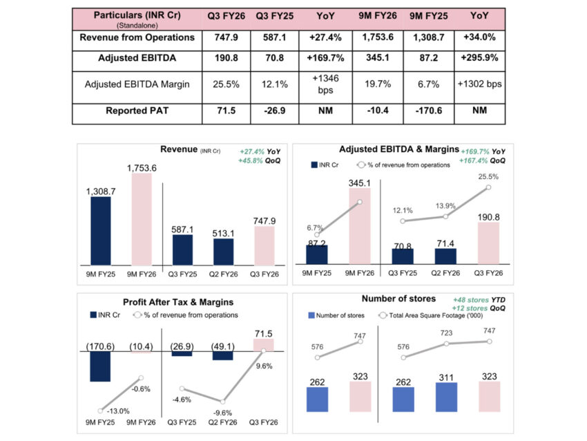 Jaipur (Rajasthan) [India], January 23: BlueStone Jewellery and Lifestyle Limited (‘BlueStone’), a leading digital first, direct-to-consumer jewellery brand, announced its Q3FY26 financial results today. The company delivered its first quarter of positive PAT driven by expanding EBITDA margins with continued growth momentum. Profitability reflected a strong year-on-year improvement with strong standalone adjusted EBITDA performance. Reported PAT stood at INR 71.5 crore versus a loss on a standalone basis of INR 26.9 crore in Q3 last year.