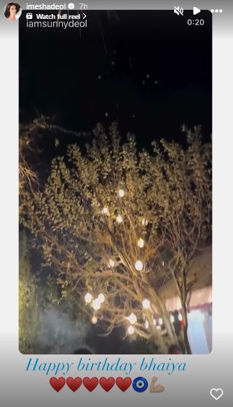 Sunny Deol’s step-sister, actor Esha Deol, also extended birthday wishes and wrote, “Happy birthday bhaiya.” She reshared Sunny’s birthday celebratory video on her Instagram story.