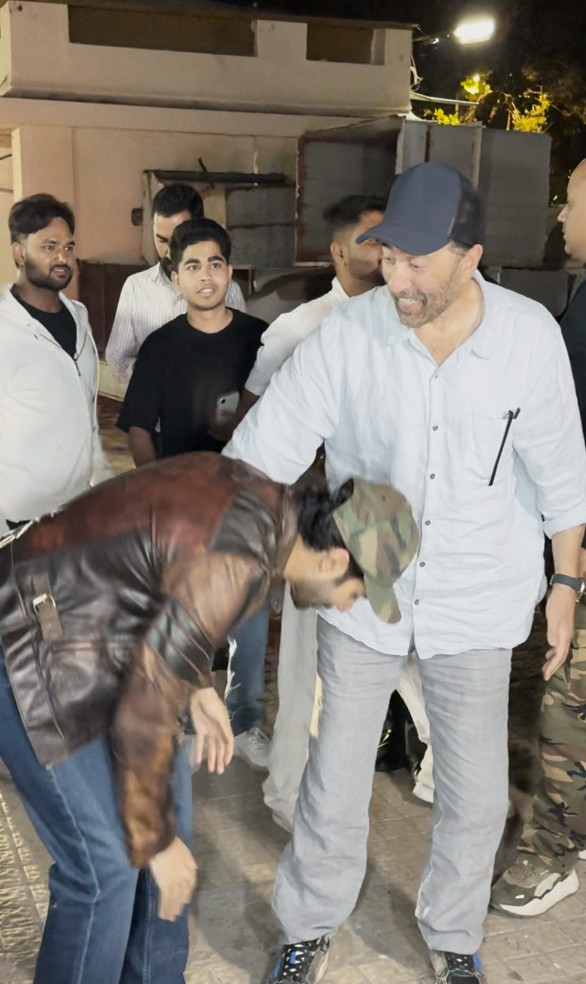One of the highlights of the premiere was Varun Dhawan’s respectful gesture towards his co-star, Sunny Deol, outside the venue. Varun Dhawan was dressed in blue jeans and a leather jacket paired with a white t-shirt.