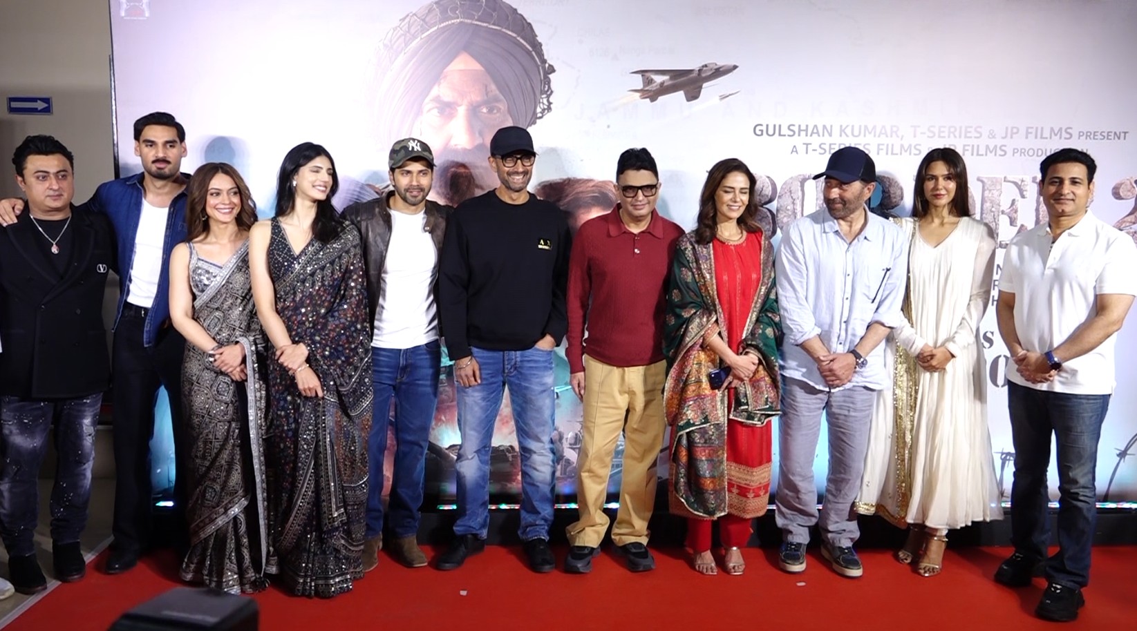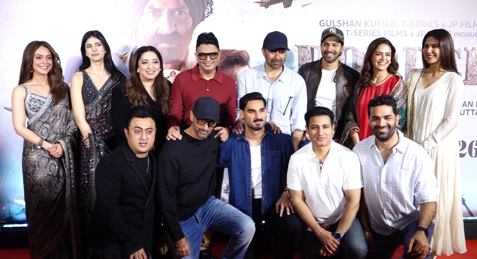 The grand premiere was attended by the lead cast, including Sunny Deol, Varun Dhawan, Ahan Shetty, Mona Singh, Anya Singh, Sonam Bajwa, producer Bhushan Kumar and others.