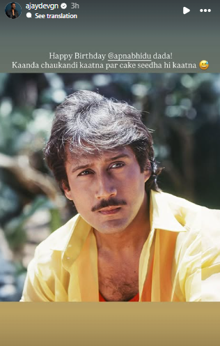 Taking to his Instagram story, Ajay Devgn shared an old picture of Jackie Shroff and penned down his greetings. “Happy Birthday @apnabhidu dada! Kaanda chaukandi kaatna par cake seedha hi kaatna,” he wrote.