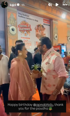 Likewise, Kajol also took to her Instagram story and shared a video with the ‘Ram Lakhan’ star. In the video, Kajol appears delighted upon receiving a plant from Jackie Shroff. “Happy birthday @apnabhidu, thank you for the paudha.”