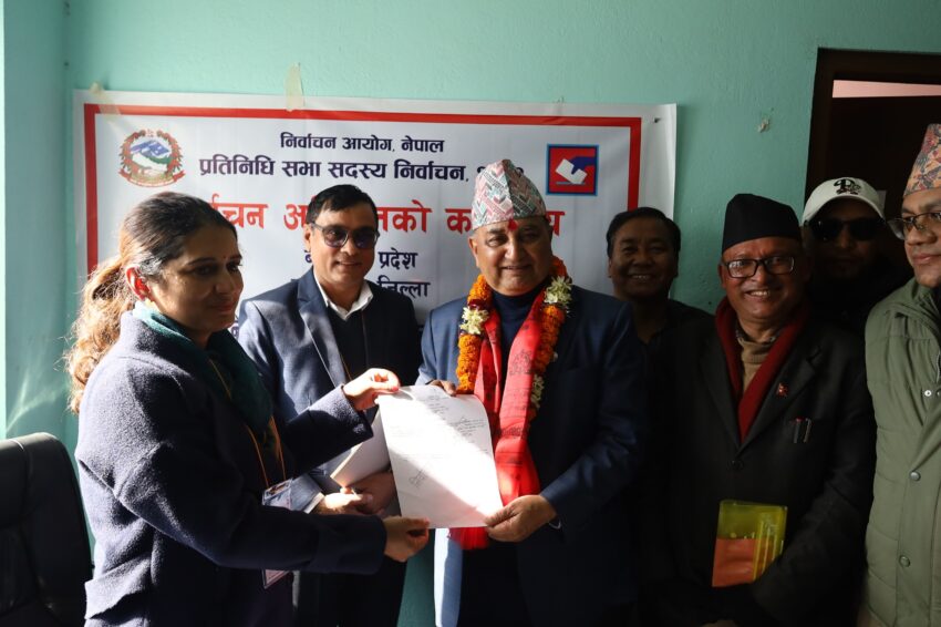The party’s chairman, Lamichhane, registered his candidacy from Chitwan-2 through a proxy, as he was unable to appear in person due to ongoing legal proceedings in a cooperative fraud case at the Parsa District Court.