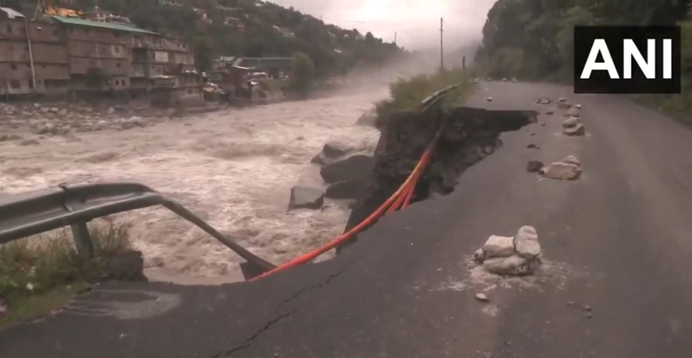 Heavy rainfall in the Kullu district has also led to a portion of the highway being washed away as the Beas River flows in spate.
