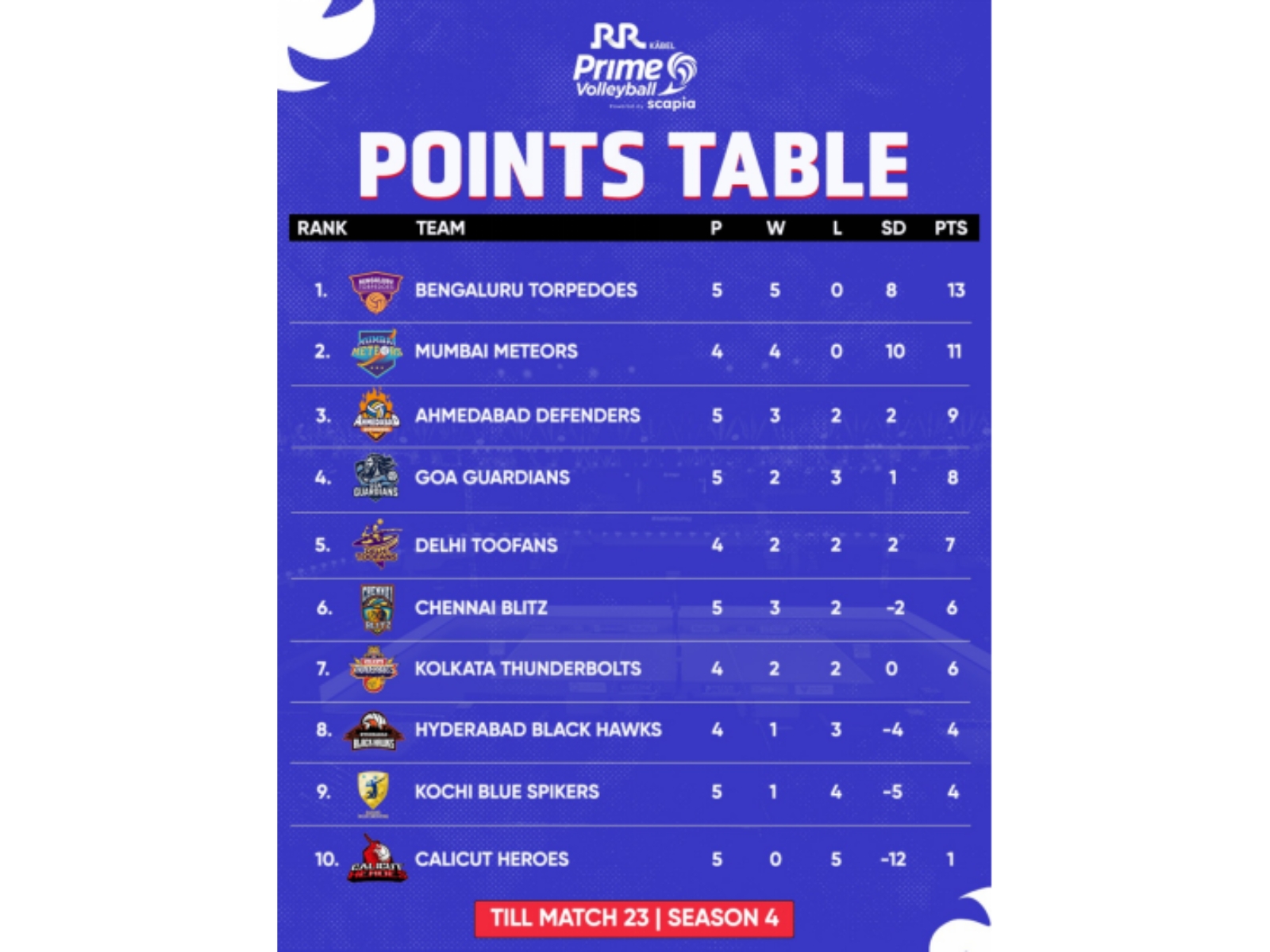 Chennai regained control through Tarun Gowda’s powerful super serve, while debutant Azizbek Kuchkorov impressed with key blocks that frustrated Ahmedabad’s attackers. Brazilian star Luiz Felipe Perotto also added firepower to Chennai’s frontline as the match swung back and forth.