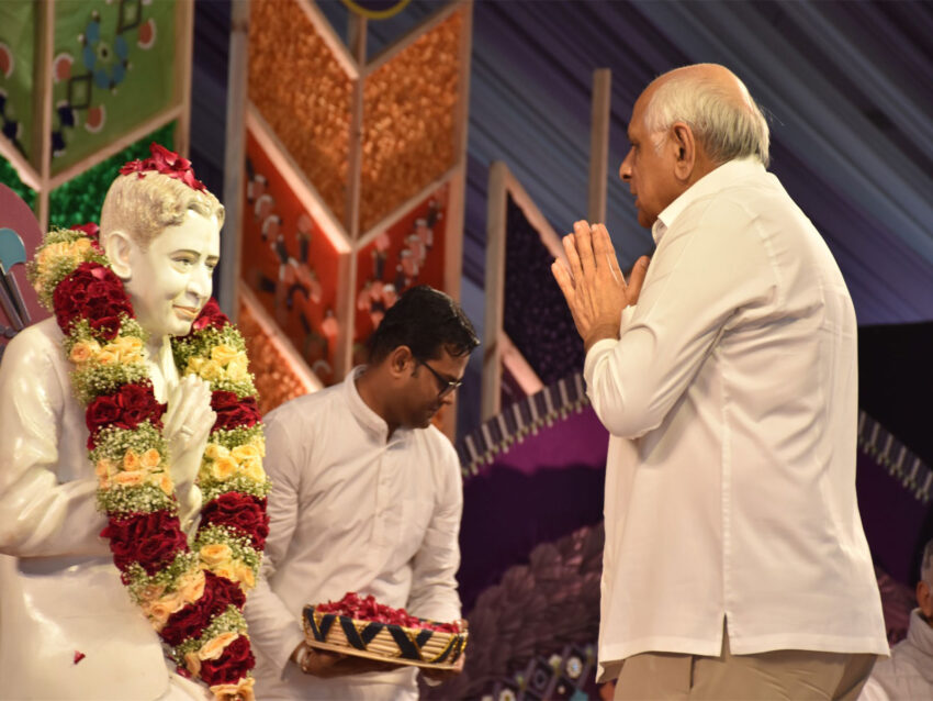 The Chief Minister paid his respects to Shree Deepakbhai, offering a garland and seeking his blessings. Shree Deepakbhai presented the Chief Minister with Gnani Purush – Part 6, a book based on the life of Dada Bhagwan, according to the release.