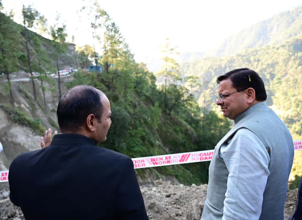 During the inspection, District Magistrate Manish Kumar briefed the Chief Minister in detail about the geographical conditions of the Swala landslide site, the volume of debris, water flow direction, geological structure, and the availability of alternative routes.