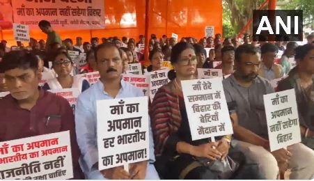 In protest against the alleged remarks, Bihar BJP leaders staged a silent demonstration (maun dharna) at a Mahagathbandhan event in Darbhanga.