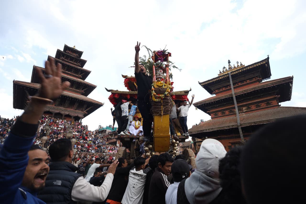 “The chariot is pulled for 8 nights and 9 days. On the first day it is pulled around and on is taken to the lower area of the (taumadhi) square. It is rested for the two days and on the new year day it is pulled to the upper area and again is rested for another two days. This year it will be celebrated till the 5th of Baisakh,” Shivaram Bhoju, chairperson of the Taumadhi Club, said.
