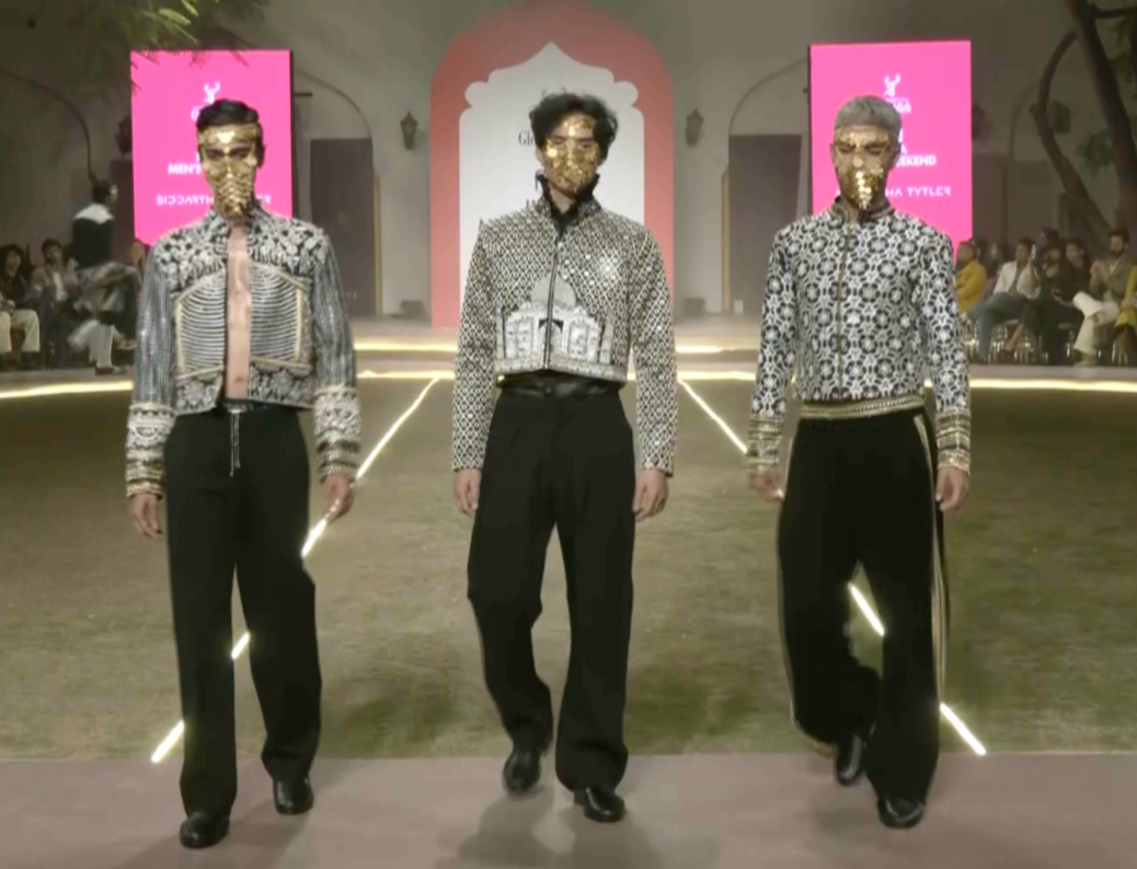 While Paresh Lamba’s ‘Kaivalya’ explored Indo-Western ceremonial dressing with architectural black silhouettes, disciplined tailoring, and controlled embellishment, Nitin Bal Chauhan’s mystical collection brought ancient craftsmanship into focus, largely inspired by the Himalayan folk tale of Gugga.