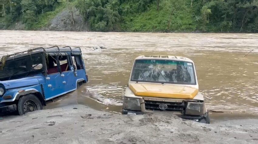 A team from the National Disaster Response Force (NDRF) has been deployed to assist in rescue operations, while the movement of vehicles has been restricted on the Siliguri-Darjeeling SH-12 road after a portion of the Dudhia iron bridge collapsed due to incessant rainfall.