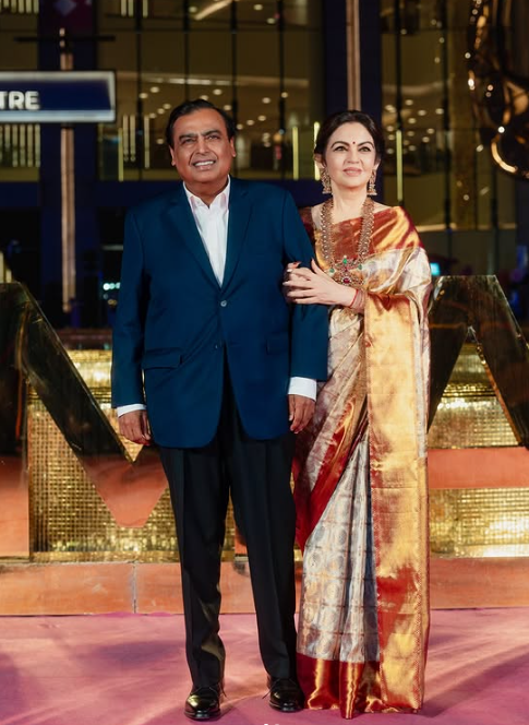 Nita Ambani’s look stood out for its symbolic and aesthetic detailing. At the heart of her appearance was a custom molten gold silk saree that delivered a luminous, almost liquid-like sheen under the event lights.