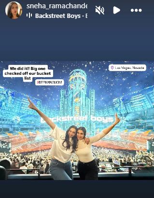The picture shows Deepika and Sneha posing happily for the camera, standing in front of a massive crowd and a decked-up venue. The actor was dressed in a simple white T-shirt and jeans for the concert.