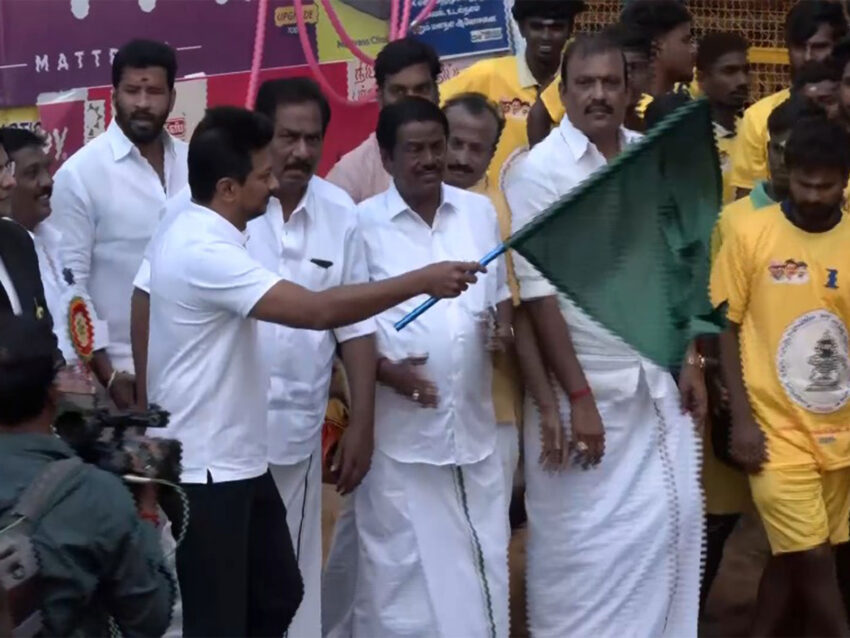 Madurai (Tamil Nadu) [India], January 16 (ANI): Tamil Nadu Deputy Chief Minister Udhayanidhi Stalin on Friday flagged off the annual Palamedu Jallikattu in Madurai. Actor Soori was also present at the inauguration of the traditional bull-taming event, which drew large crowds.