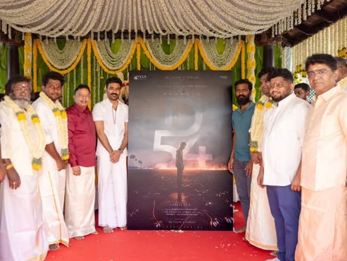 Dhanush, producer Dr Ishari K Ganesh, and director Vignesh Raja posed with the D54 poster for the pictures at the pooja ceremony.