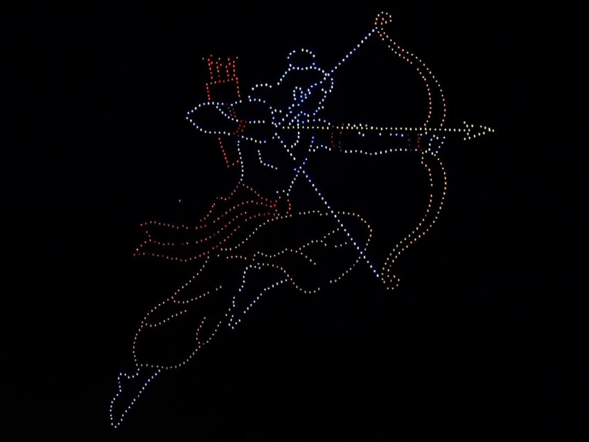 The drones painted a spectacular display in the sky, featuring visuals of Lord Hanuman, Lord Rama, Dhanush, and Ravana.