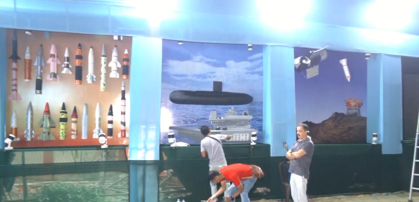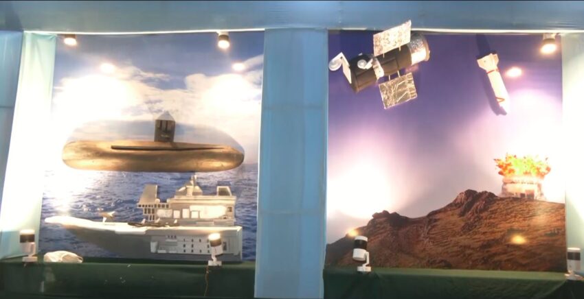 The huge pandal features a Goddess Durga idol and several cutouts of fighter jets and submarines placed on the side walls of the pandal.