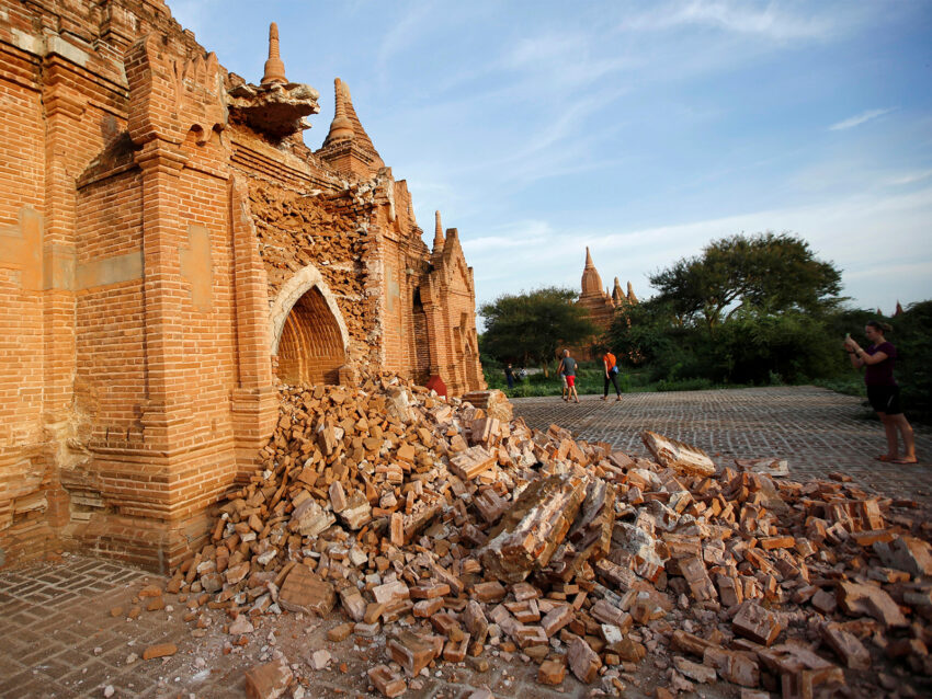 A 1,400-kilometre transform fault runs through Myanmar and connects the Andaman spreading centre to a collision zone in the north called the Sagaing Fault.