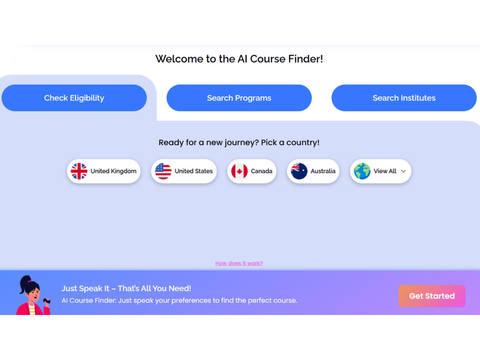 Edvia’s AI Course Finder makes the search for your dream university and program effortless. Within seconds, it matches your academic profile with data from 850+ universities worldwide, giving you the best options that suit your background and goals.