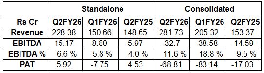 The following table summarizes the unaudited financial results for Q2 FY26 as approved by the Board of Directors on November 10, 2025: