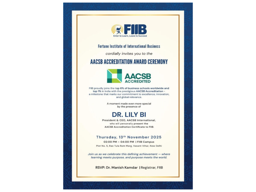 New Delhi [India], November 6: The Fortune Institute of International Business (FIIB) proudly announces that it has earned accreditation from AACSB International (Association to Advance Collegiate Schools of Business), the world’s longest-serving and most recognized accrediting body for business schools.