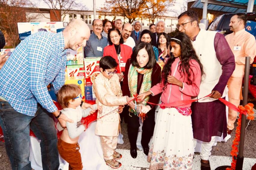 The donation event featured a ribbon-cutting ceremony attended by Newton Mayor Ruthanne Fuller, who praised FIA New England and the Indian-American community for their dedication to supporting local families and addressing food insecurity — especially during the ongoing government shutdown, when many were concerned about SNAP program funding.