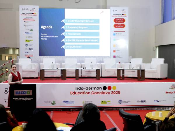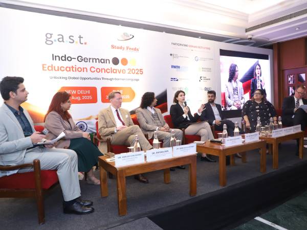 Stories like Aarav’s played out in both Delhi and Pune, as the Indo-German Education Conclave 2025, co-organized by g.a.s.t. e.V. and Study Feeds, brought German Public universities, embassy official, and Indian school leaders together under one roof. The Conclave, hosted at the India Habitat Centre on August 18 and Pune’s MCCIA Trade Tower on August 21, drew packed halls of teachers, principals, parents, and eager students.