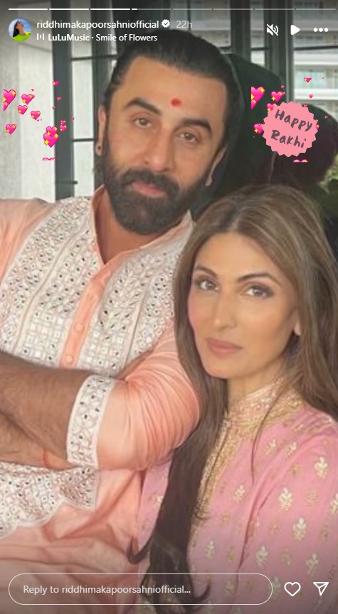 Ranbir Kapoor also received a heartfelt wish from his sister, Riddhima Kapoor Sahni, who took to her Instagram stories to share Raksha Bandhan greetings. In one of them, Riddhima shared an unseen picture with her brother, showing the duo in traditional attire. “Happy Rakhi,” she wrote.