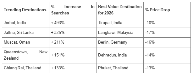 Neel Ghose adds, “What we’re seeing is that Indian travellers are gravitating towards deeper cultural connections and experiences. Social media, particularly authentic video guides, are inspiring this wanderlust and shaping how people choose their next destination. The surge in searches for places like Jorhat and Jaffna reflect a desire to explore relatively lesser-known gems, rich in heritage and local flavour. On the other hand, the best value destinations have benefited from improved connectivity, new routes, and expanded flight options, making traditionally premium locations like Berlin more accessible to a larger number of Indians. Together, this shows how travellers are becoming more intentional and strategic in their choices for 2026.”