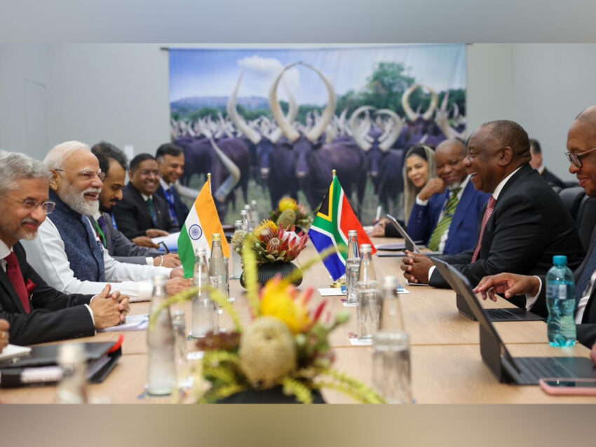 Sharing visuals of the meeting, South Africa’s Presidency wrote on X, “His Excellency President Cyril Ramaphosa is in a bilateral meeting with His Excellency Prime Minister Narendra Modi of the Republic of India on the margins of the Group of Twenty (G20) Leaders’ Summit hosted by South Africa. Johannesburg EXPO Centre, Gauteng.”