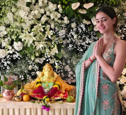 Planning to keep it simple yet stylish? Ananya Panday’s festive fit might be the perfect choice for you. The ‘Call Me Bae’ star was seen in a pastel floral suit as she brought Ganpati home last year. Ananya kept it minimal with a no jewellery look and a simple hairdo.