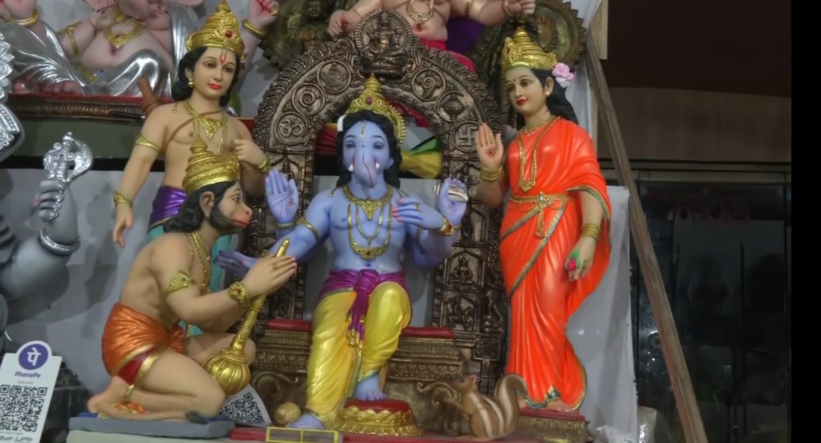 Venkatesh, another Ganesh Idol seller, highlighted the varied forms of idols he sells and said, “We have around 250 types of Ganesh idols in our shop, sourced from Mumbai, Pune, and Solapur. We have been selling these idols for two years, and we have idols ranging from 1 foot to 13 feet in height. We have various models, including Shivaji and other varieties.”