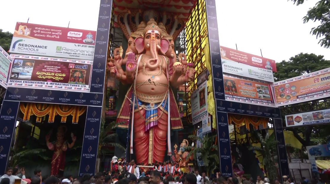 On the occasion of Ganesh Chaturthi, a 69-ft-tall idol of Lord Ganesh was installed in the Khairatabad area of Hyderabad with the theme “Vishwashanti,” meaning world peace.